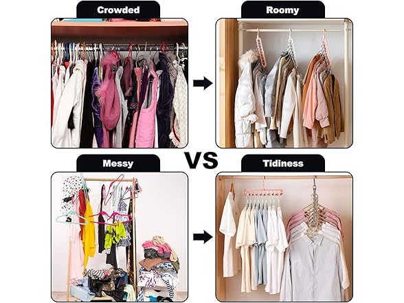 - Home Helper for Organization and Storage: Newly designed closet organizer system hangers save space and is a nice choice for your bedroom,dormitory,apartments and any limited spaces. Use these hangers to sort and store your wardrobe,organize clothes and make full use of room space. The clothes storage and organization is a perfect idea and provides you with high-quality service. Closet organizer make it easy to store and find clothes. Start a new life with space saving hangers for clothes