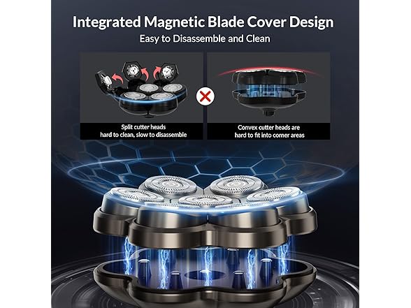 - Multi-functional Shaver Specifically Designed for Men: Exclusive 7D concave blade design fits head and face contours better. Whether it’s shaving your beard or going completely bald, this shaver has you covered. Integrated magnetic detachable head offers a professional floating shave for bald men. Easy to remove and rinse, perfect for men who value speed, cleanliness, and no-fuss maintenance
