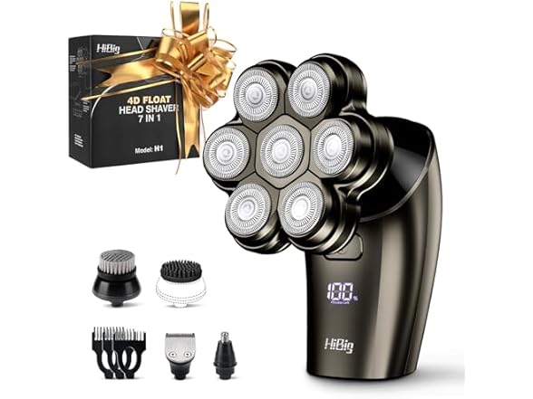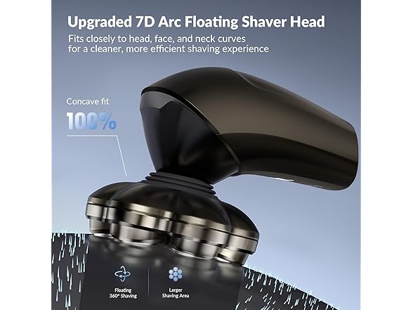 - Upgraded 7D Floating Shaving Head: Featuring Hyperflex 360° pivoting technology, the 7D blade head shaver conforms perfectly to the curves of your head, face and neck. It captures more hair in fewer strokes, improving efficiency and saving time. Paired with a powerful high-speed motor, this shaver delivers a smoother, faster shaving experience every time