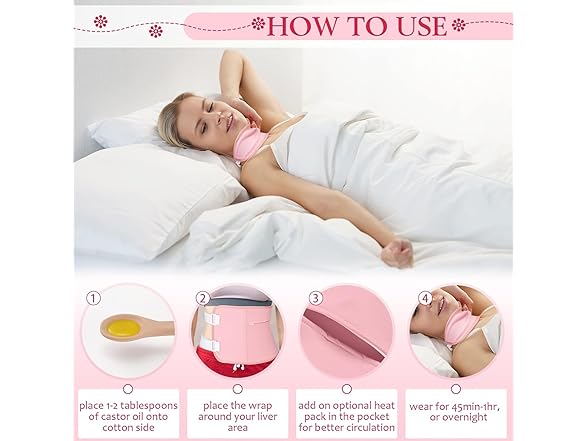 HIDOVETEC Castor Oil Pack Wrap for Abdomen and Neck Set, Organic Cotton, Adjustable,Reusable, Fit Fifferent Waist Sizes, Leakproof(Castor Oil Not Included), 2Pcs Pink