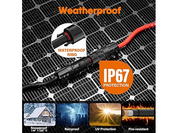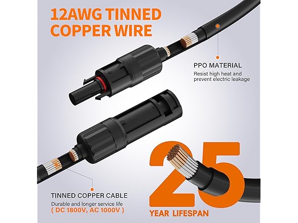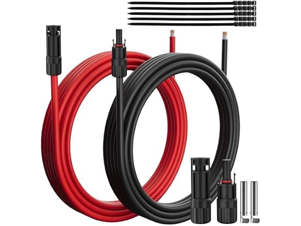 12AWG Solar Extension Cable 75 Ft, Solar Pannel Cable Tinned Copper Wire, with Extra Female and Male Waterproof Connector Pair, Ties, for Home, RV, Photovoltaic Systems (75FT Red+75FT Black)