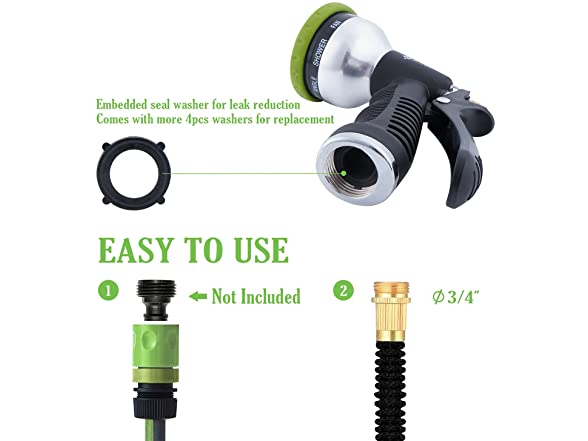 - ☘【Durable&Leakproof】- Green expert hose nozzle is mainly made up of zinc alloy washing gun and thermoplastic cover, well sealed with impact resistance. It can be used for jetting the liquid of disinfectant and sanitizer. Extra washer prevents leaks at the point of connection with hose.