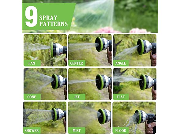 - ☘【9-Way Spray Patterns with Easy Adjustment】- This item has great 9 settings -Shower, Flat, Angle, Center, Flood, Fan, Mist, Cone, Jet for Watering and Washing in a variety of environments to meet all of your needs.