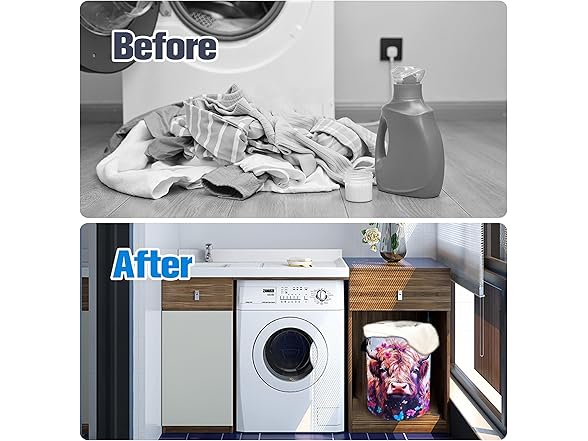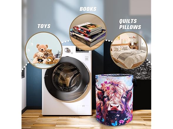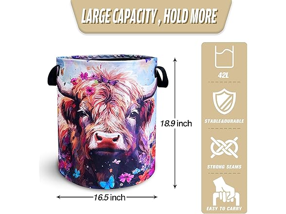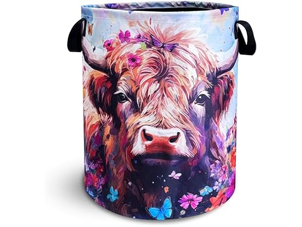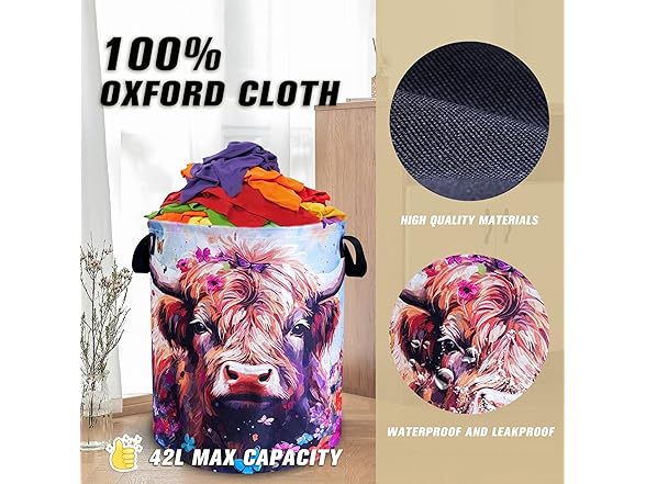 Highland Cow Laundry Basket Brown Cow Foldable Oxford Cloth Funny Tote Bag Laundry Hamper Clothes Storage Bucket Toy Organizer For Bathroom/Laundry Storage/Bedroom 18.9x16.5 Inch