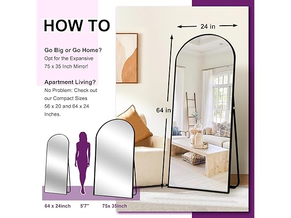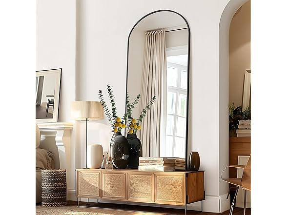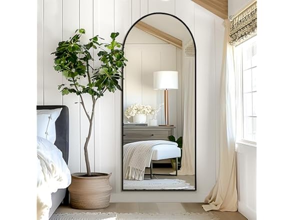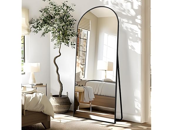 HIGREENA Arched Full Length Mirror, 64"x24" Full Body Mirror with Aluminum Alloy Frame, Free Standing or Wall Hanging