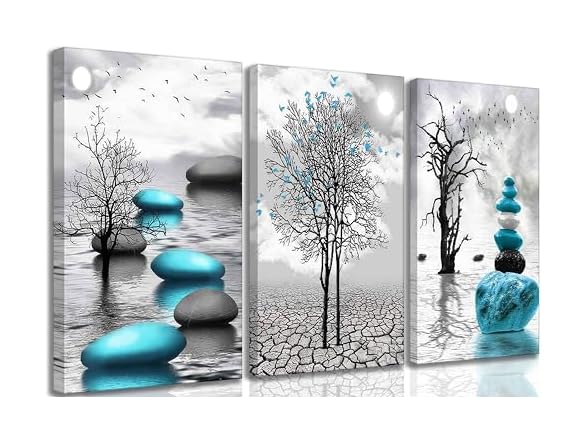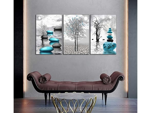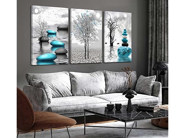 3 Pcs Zen Canvas Wall Art Modern Meditate Tranquil Inspirational Abstract Black and White Painting Blue Picture Wall Decor Poster Print Artwork for Living room Bedroom Office Bathroom