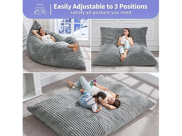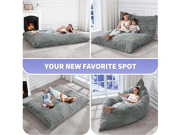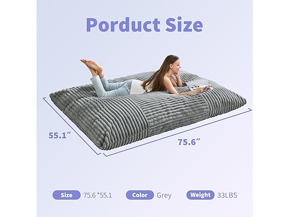 Hobestluk Giant Bean Bag Chair, Turquoise Grey