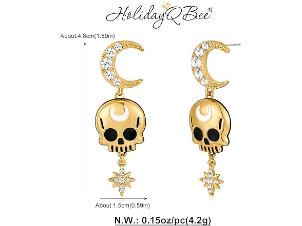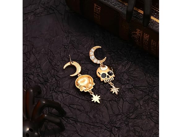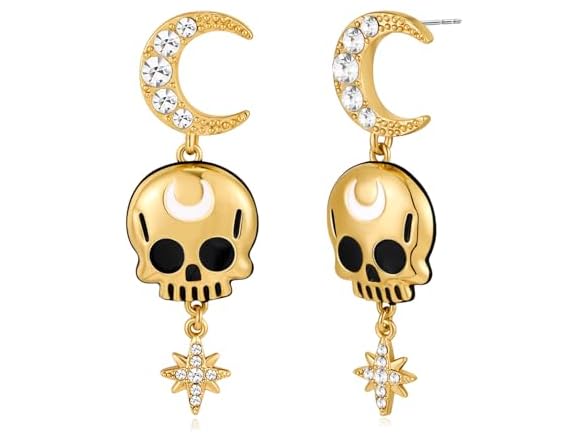 HolidayQbee Halloween Earrings For Women With Rhinestone Star Moon Gold Skeleton Earrings Skull Earrings Women Skeleton Earrings Dangle Drop Unique Halloween Jewelry