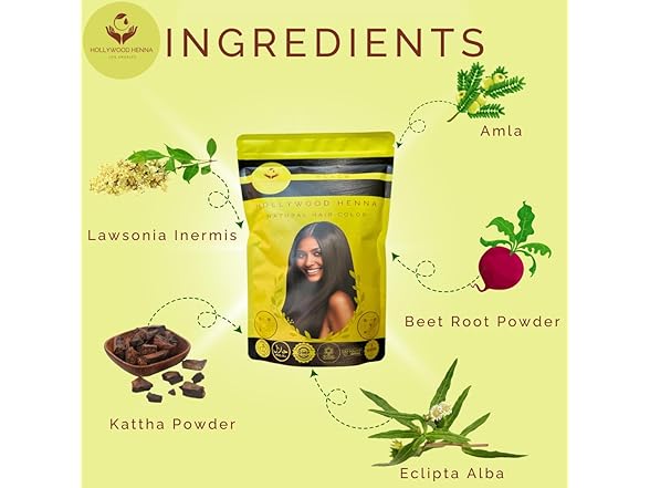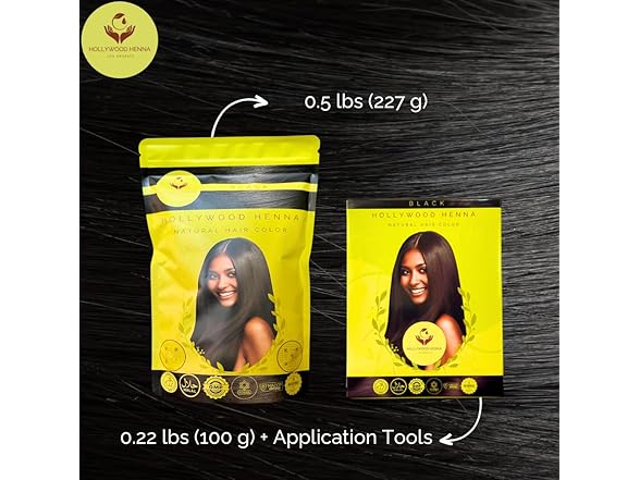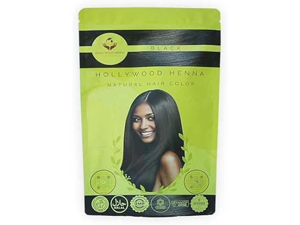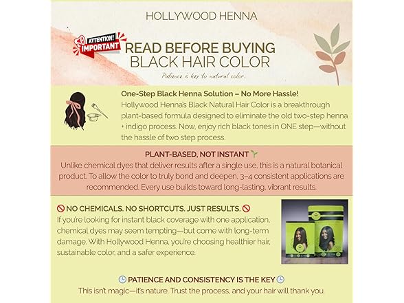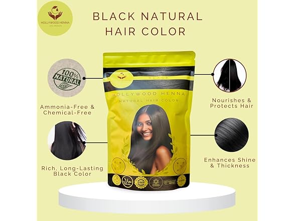 Hollywood Henna Hair Color (Black) Organic Color Hair Beard Dye (Pack of 1-227g) Henna Based Hair Colors with Pure Herbs Free Chemicals Long Lasting Natural Hair Dye for Men & Women Gift