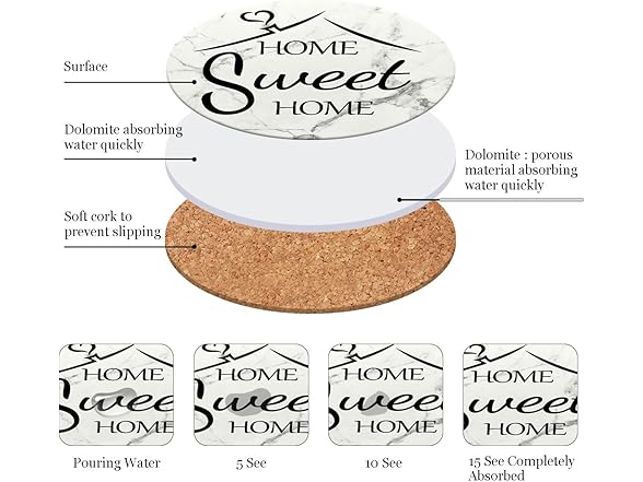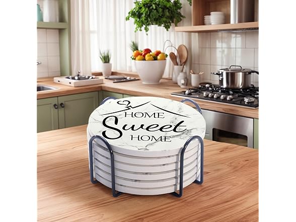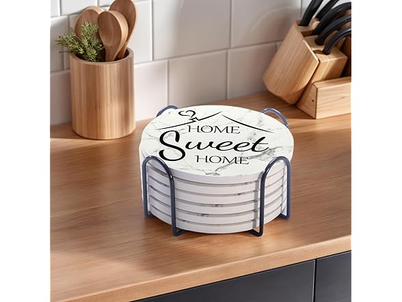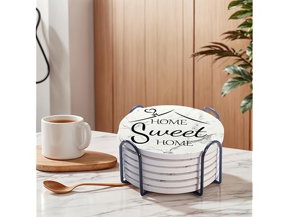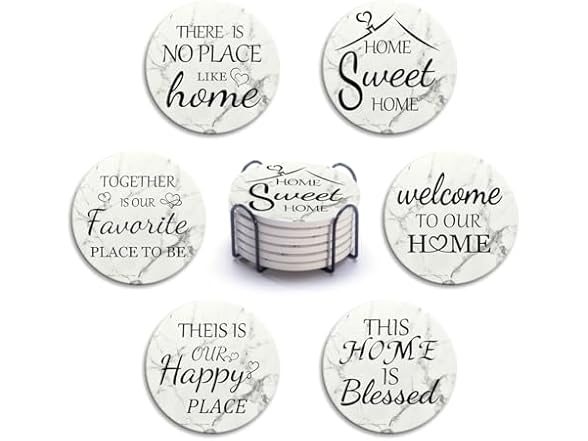 Home Farmhouse Decor Coasters Set of 6 Absorbent Drinks Ceramic for Coffee Table Cup Modern House Warming Gift Decorations Cute Marble Drink Coasters Set,4 Inches