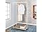 Honey-Can-Do Clothing Rack, Clothes Rack with Wood Shelf, Freestanding, Easy to Assemble Garment Rack, Standing Metal Sturdy, Small Space Storage Solution, with Shoe Storage and Wheels, White