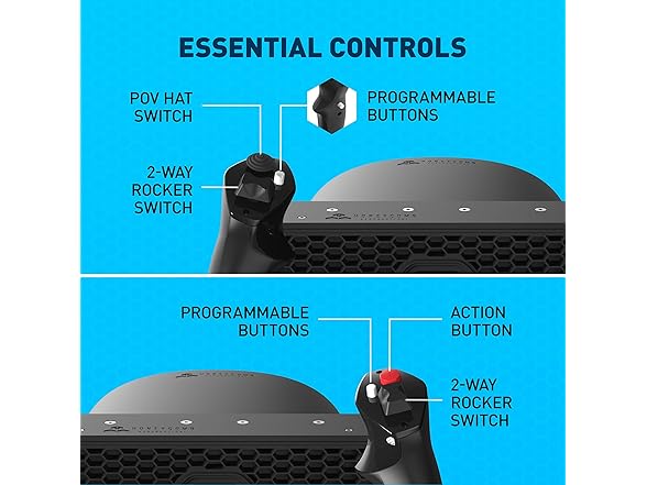 - INTUITIVE NAVIGATION - Left: POV switch, 2-way rocker switch, 2 programmable buttons. Right: 2-way rocker switch, 2 programmable buttons – Your essentials for an optimal flight experience.