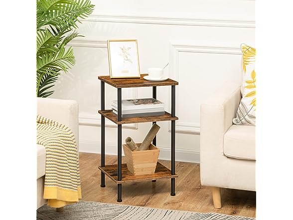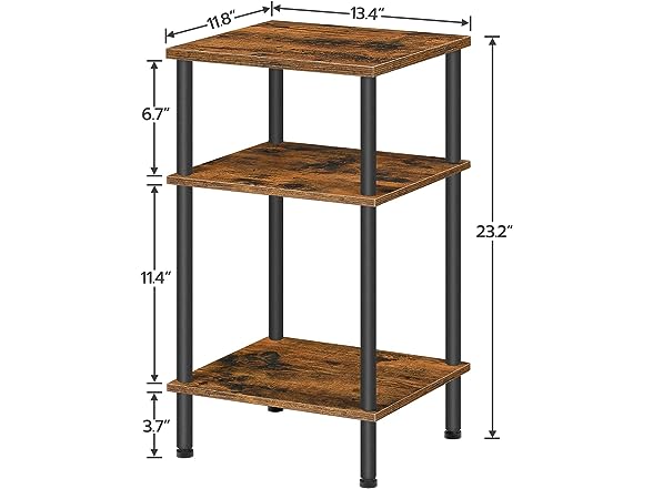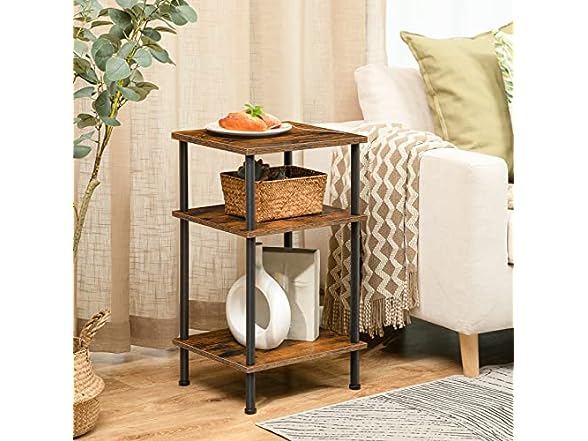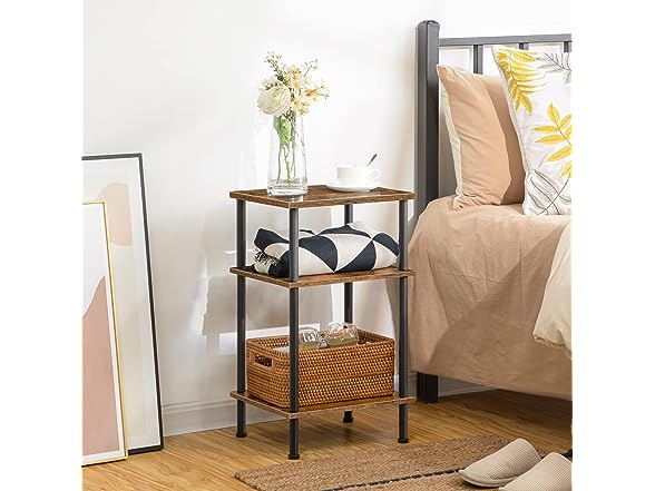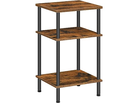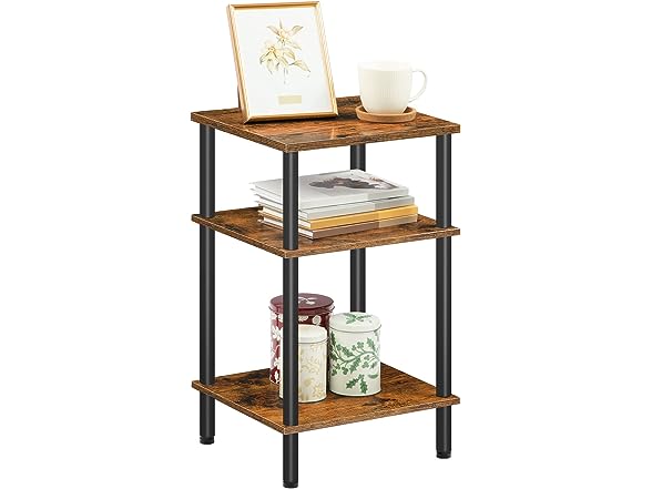 HOOBRO End Table, 3-Layer Tall Side Table, Nightstand for Small Space, Beside Table in Bedroom, Sofa Table for Living Room, Industrial Style, Stable Frame, Easy Assembly Rustic Brown BF10BZ01