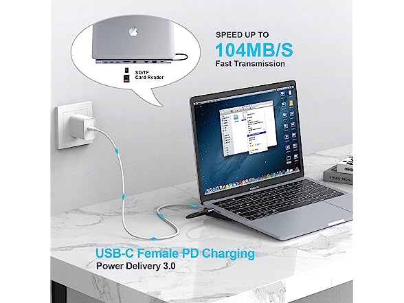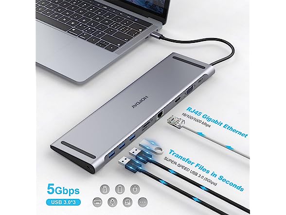 - 【Superfast data transfer】3 USB 3.0 ports support transfer speeds of up to 5Gbps. The SD/TF slot allows you to access files in seconds. The RJ45 Gigabit Ethernet port provides more stable and faster Internet access (up to 1Gbps) than most wireless connections.