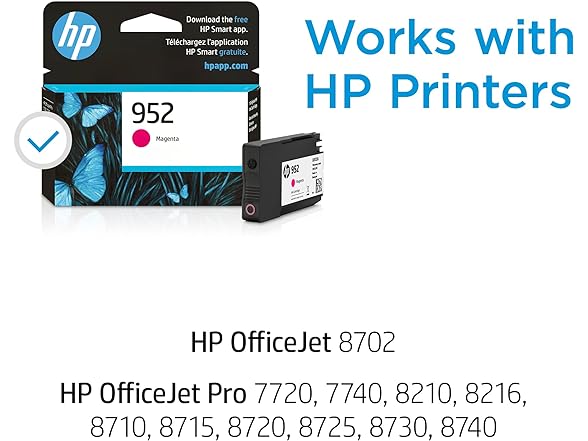 HP 952 Magenta Ink Cartridge, Works with HP OfficeJet 8702, HP OfficeJet Pro 7720, 7740, 8210, 8710, 8720, 8730, 8740 Series, Eligible for Instant Ink, L0S52AN