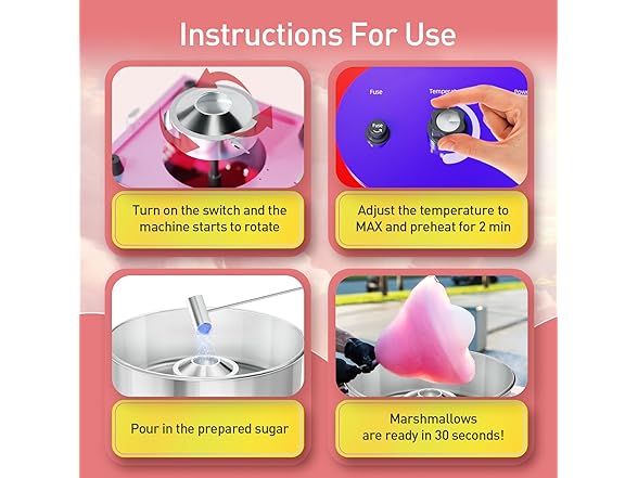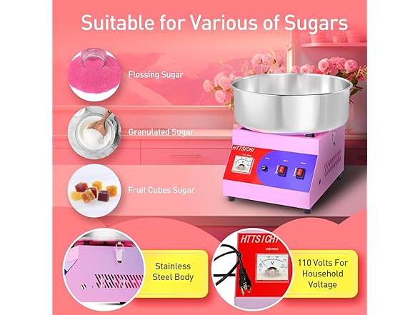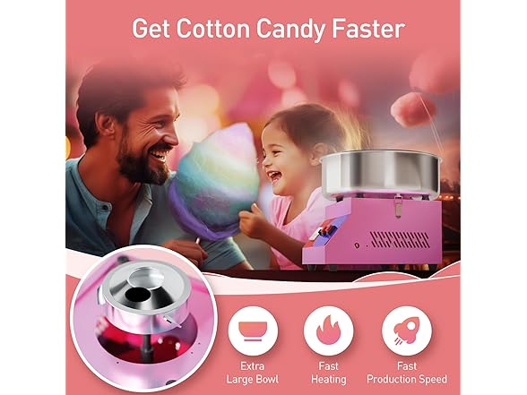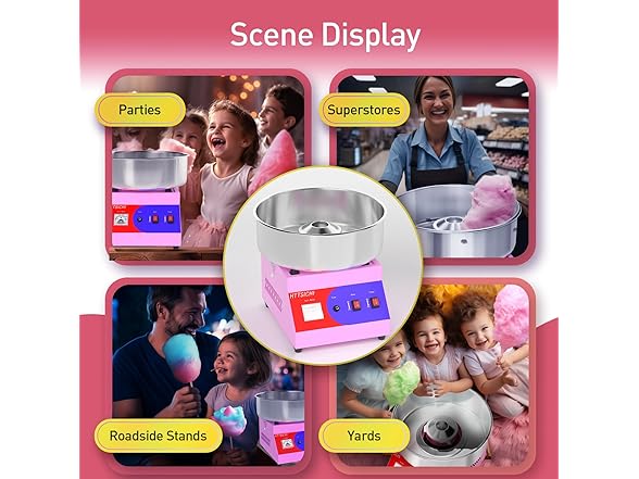 - Accepts various types of candies: Unlike other brands' cotton candy machines, ours can accept all kinds of candies, including hard candy, soft candy, and fruit candy. This versatility allows you to offer a wide range of flavors in different settings. Our professional cotton candy machines are suitable for various scenarios. Our shop cotton candy maker are perfect for creating sweet treats at home, livening up parties, carnivals, fairs, and being a hit at weddings, festivals, birthday parties, sports events, or fundraisers.
