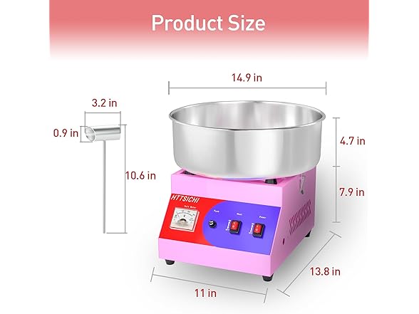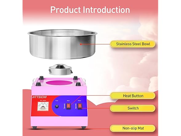 - A design full of details: The machine comes with a special stainless - steel scoop designed for easily picking up candies (such as hard candies used as raw materials). Additionally, it has 4 non - slip feet underneath. These feet not only hold the cotton candy machine firmly in place but also, which is a great bonus, they won't wear out your floors. This means you can use the machine worry - free, whether it's in a home kitchen or at a large event venue. Great for parties and events for the growing number of excited stills!