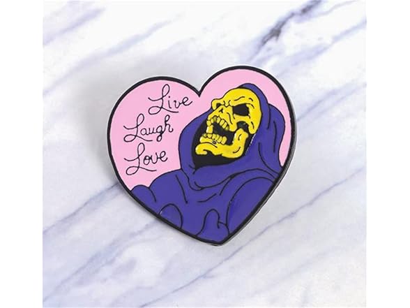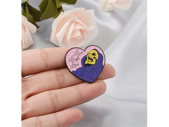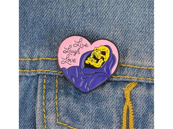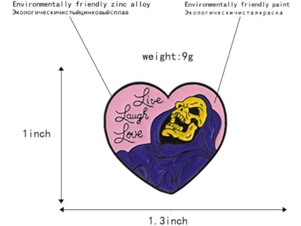 Live Laugh Love Enamel Pin Heart Shape Skeleton Badge Brooch Lapel Pin for Jeans Shirt Bag Gothic Jewelry Gift for friend Halloween Decoration Brooch