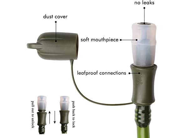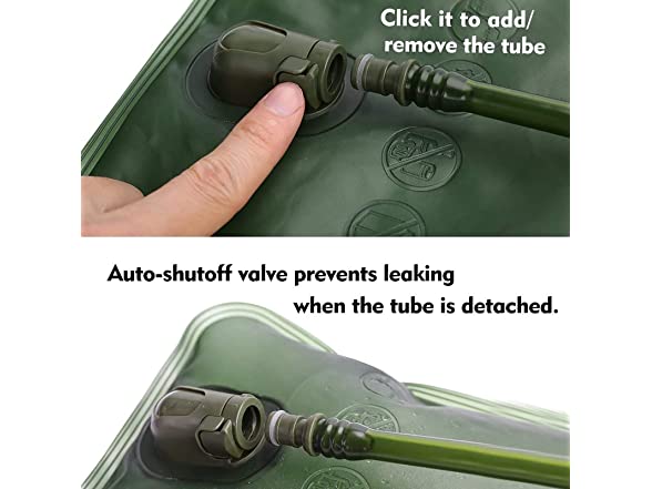 - WELL-SEALING WATER BLADDER – You won't be slowed down with our high flow bite-valve. Simply bite the mouthpiece to suck water. Soft mouthpiece with easily accessible ON/OFF valve. It also has a cover to keep dirt out. Conveniently control the water flow by biting. Quick-release tube is detachable. While the tube is removed, the connnector automatically shut off and the hydration bladder will stay filled. Store neatly in fridge/icebox without tangling hose.
