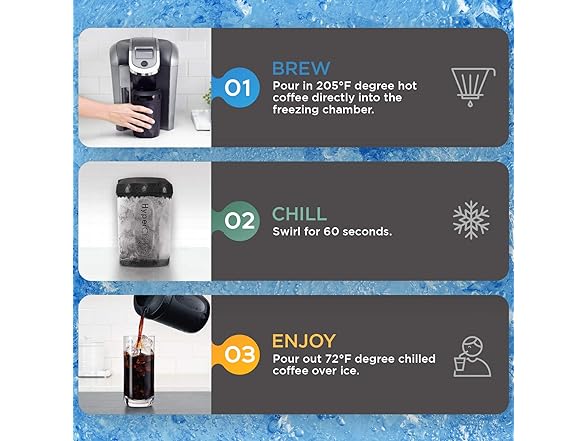 HyperChiller HC3 Patented Iced Coffee/Beverage Cooler, NEW, IMPROVED,STRONGER AND MORE DURABLE! Ready in One Minute, Reusable for Iced Tea, Wine, Spirits, Alcohol, Juice, 12.5 Oz, Black