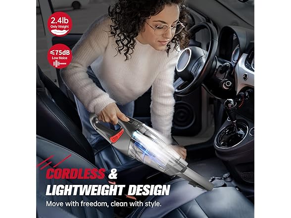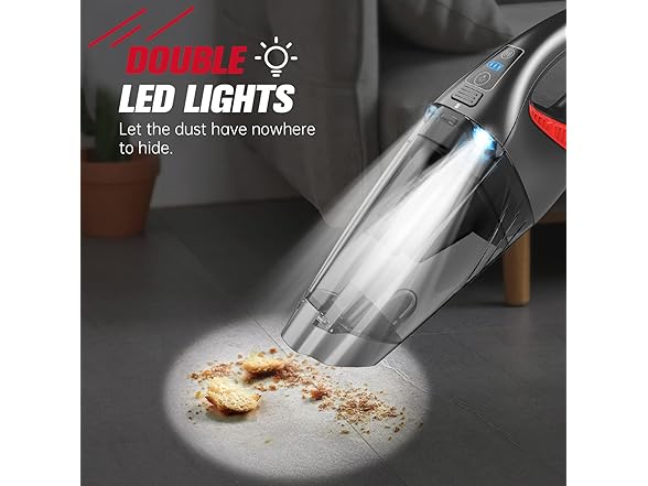 DUAL LED LIGHT & LIGHTWEIGHT: Cordless handheld vacuums get rid of bulky tangled cords, making them easy to carry and store. Advanced configuration with 2 LED lights to visualize efficient cleaning in the dark without worrying about crevices corners and dark areas, move and clean however you want. Ideal for cleaning inside the car.