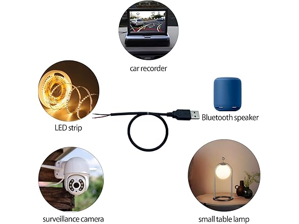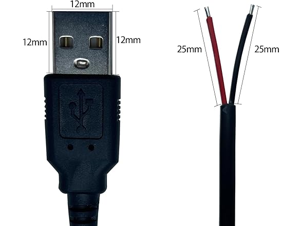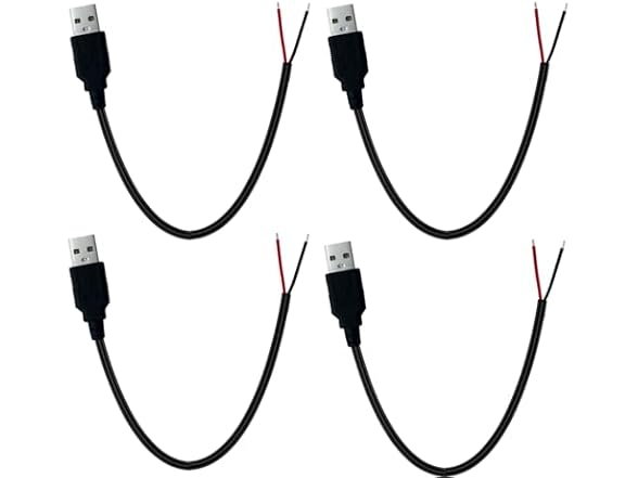 IMIYORE 1FT USB Pigtail Male DC Repair Cable 12V 3A DIY USB Cable for LED Strip Lights Small Desk Lamps and Other Low Voltage Devices 4pcs