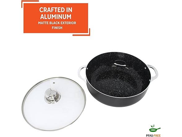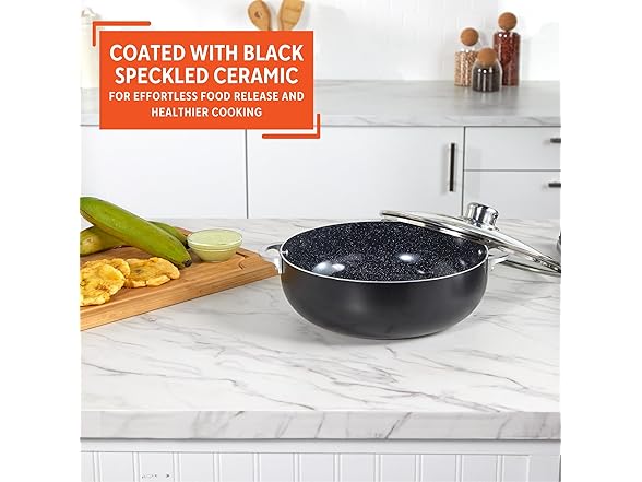 - DURABLE DESIGN: Made from sturdy aluminum, this pot features a sleek black speckled ceramic coating and a matte black exterior, combining a modern look with durability, enhacing your kitchen decor while providing reliable cooking performance