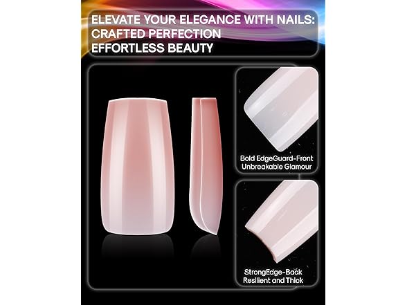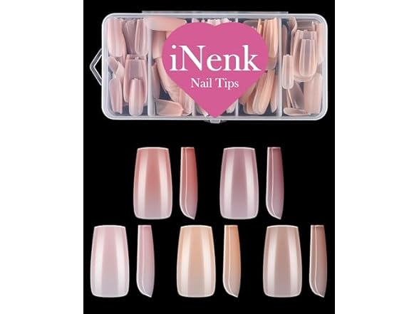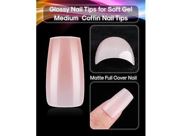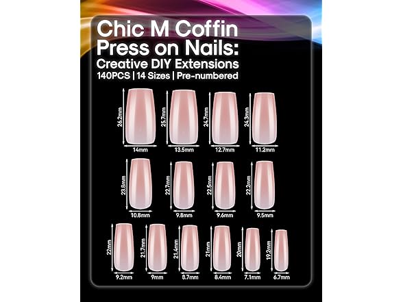 INENK Medium Wide Coffin Nail Tips, Colorful M Coffin Soft gel Full Cover Nail Tips, Press On False Nail Tips for Salons Home DIY Extensions(14 Sizes 140PCS)