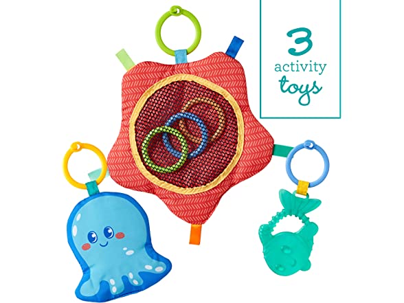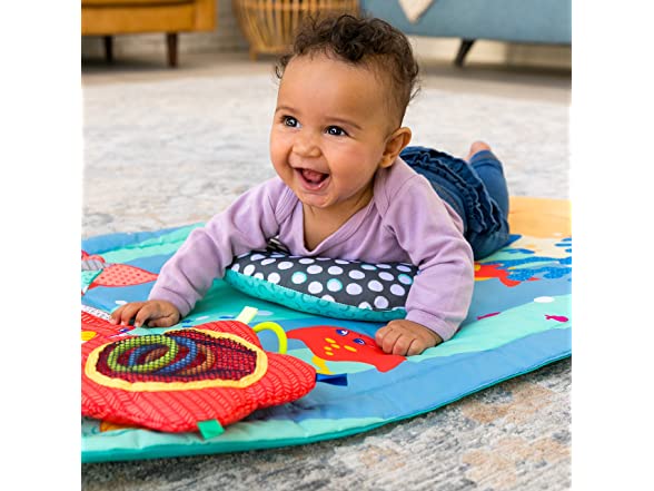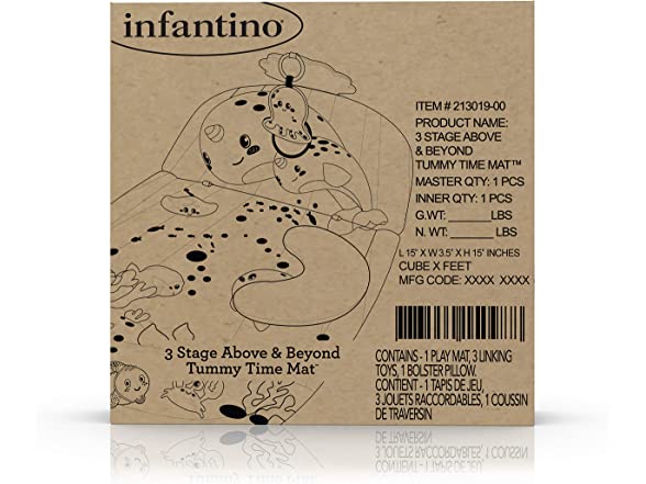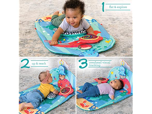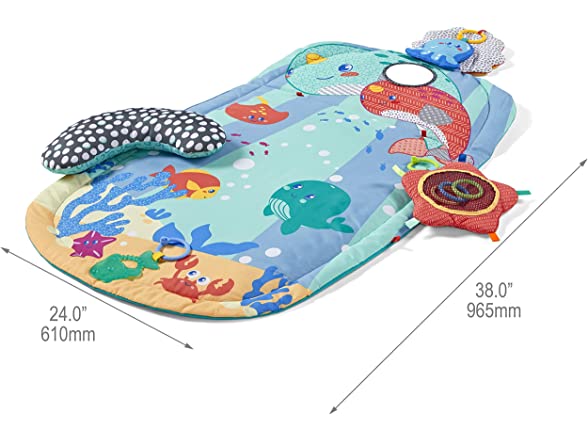Infantino 3 Stage Above & Beyond Tummy Time Mat - 3 Play Modes for Gross Motor Development, 3 Removable Ocean Themed Toys, Tummy-Time Bolster, Giant 38"x20" Mat with Kickstand for Overhead Play