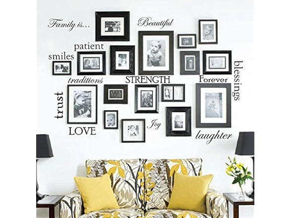Set of 12 Family Quote Words Vinyl Wall Sticker Picture Frame Wall Family Room Art Decoration #1332 (Matte Black)