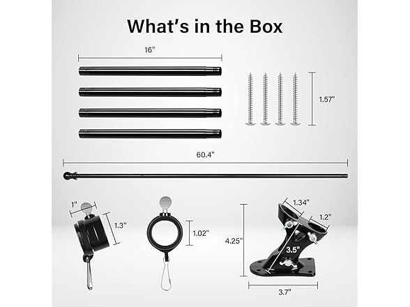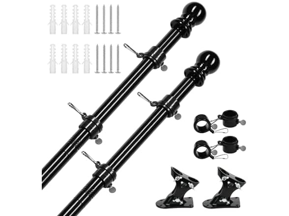 iPower 5ft Flag Pole Kit, Outdoor Wall Mounted Stainless Steel Flagpole with Bracket and Tangle Free Spinning Grommets, Adjustable Length, 5 feet, Black