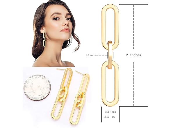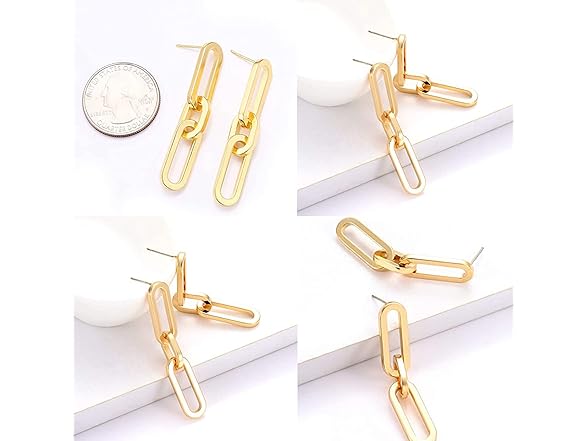 ISALOE Link Chain Drop Earrings Chunky Paperclip Link Dangle Earring Studs Statement Jewelry for Women Birthday Party Gifts (Gold)