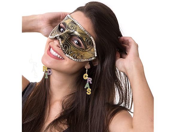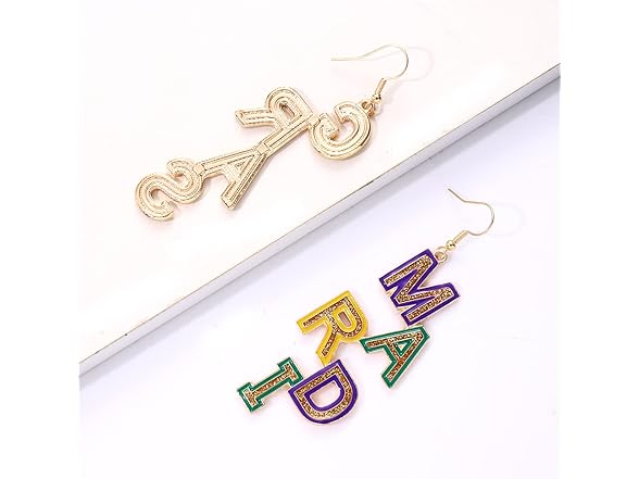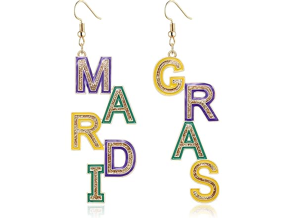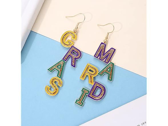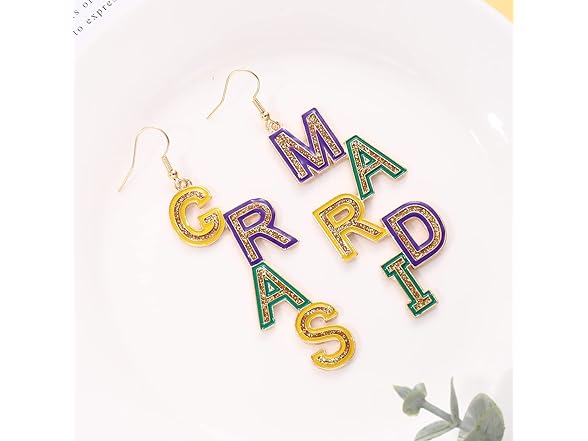Mardi Gras Earrings for Women Alloy MARDI GRAS Dangle Earrings Letter Earrings Fleur De Lis Earrings Carnival Fat Tuesday Earrings Holiday Gift (Mardi Gras)