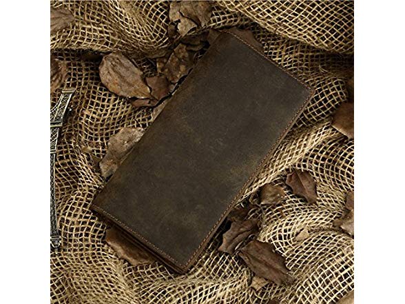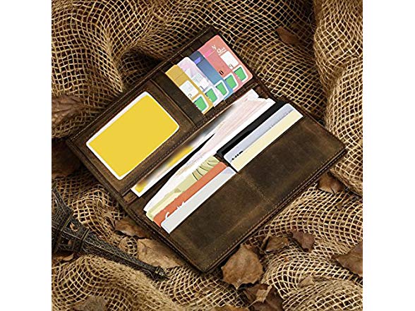 Itslife Men's RFID Vintage Look Genuine Leather Long Bifold Wallet
