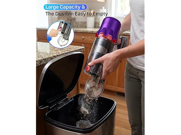 - 【One-Touch Hygienic Emptying – No Mess, No Hands】The patented one-touch ejection system empties the dustbin in just 3 seconds—hands never touch dirt. Sealed design contains dust and allergens, preventing secondary pollution for a cleaner, healthier home.