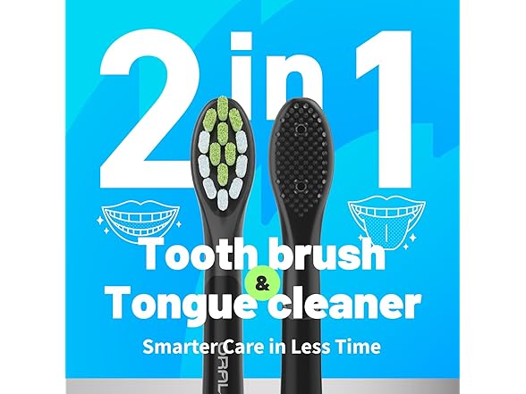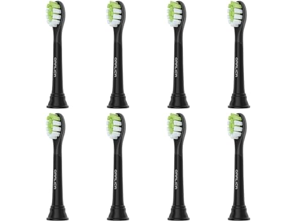 Oralica - Japanese Brand Whitening Replacement Toothbrush Heads, Compatible with Philips Sonicare Click-on Handles, 8 Pack, Medium, with Tongue Cleaner (CA668, Black)