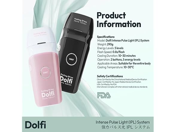Dolfi Advanced Japanese Technique Hair Removal, Laser Hair Removal Device IPL for Unisex with Ice Cooling Care Function Nearly Painless Hair Removal Device for Full Body Nice Christmas Gifts
