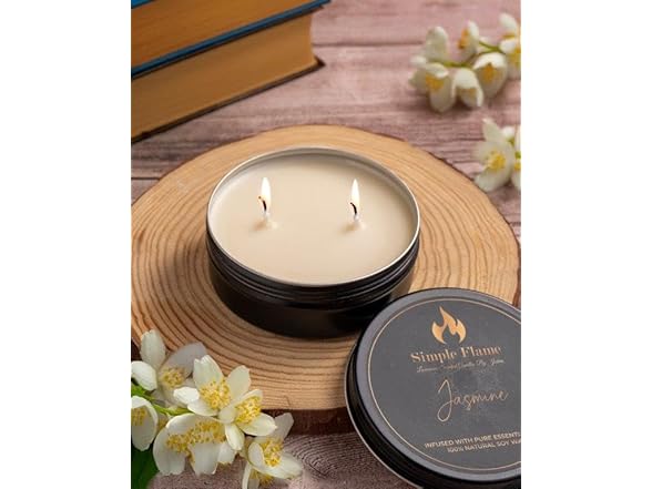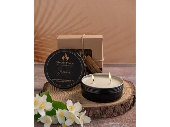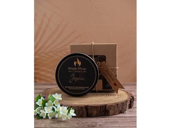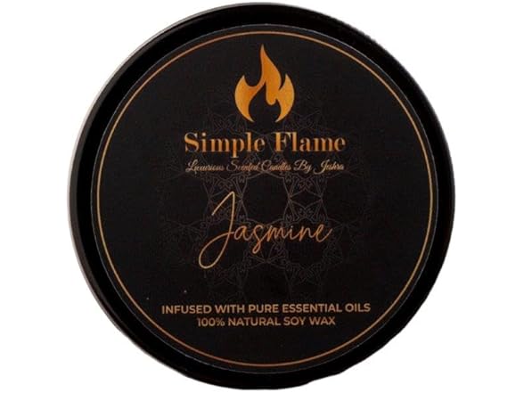Transform your space with the Simple Flame Jasmine Luxurious Scented Tin Candle. Designed for relaxation and elegance, this 7 oz candle features a 3.4-inch radius, making it the perfect addition to any room. Crafted from 100% natural soy wax, it is hand-poured in India with care and precision. Infused with a rich jasmine fragrance, this candle is highly scented to provide a soothing and invigorating aromatherapy experience. With a burn time of 28-30 hours, it offers long-lasting enjoyment, creating a calming ambiance whether for unwinding after a long day or enhancing a special occasion. Bring luxury and tranquility into your home with this thoughtfully made candle, perfect as a gift or a treat for yourself. Transforma tu espacio con la vela aromática Simple Flame Jasmine Luxurious en lata. Diseñada para ofrecer relajación y elegancia, esta vela de 7 oz con un radio de 3.4 pulgadas es el complemento perfecto para cualquier habitación. Elaborada con cera de soya 100% natural, está vertida a mano en India con cuidado y precisión. Infusionada con una rica fragancia de jazmín, esta vela proporciona un aroma intenso para una experiencia de aromaterapia relajante y revitalizante. Con un tiempo de combustión de 28 a 30 horas, ofrece una duración prolongada, creando un ambiente tranquilo, ideal para relajarte después de un largo día o para realzar ocasiones especiales. Lleva lujo y tranquilidad a tu hogar con esta vela cuidadosamente elaborada, perfecta como regalo o para consentirte.