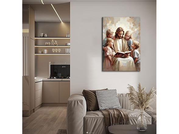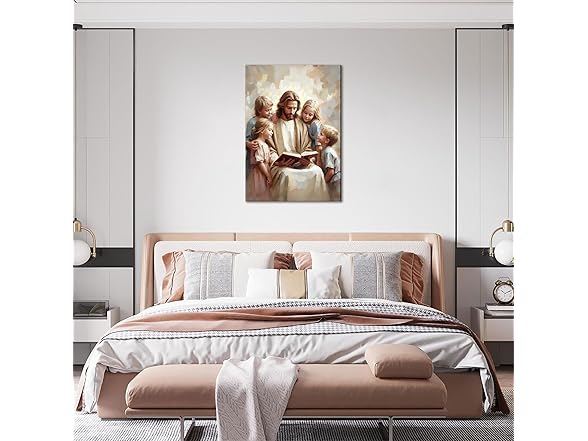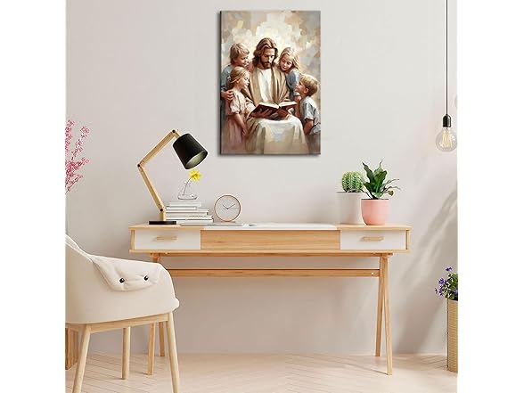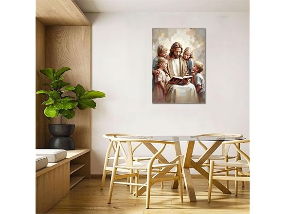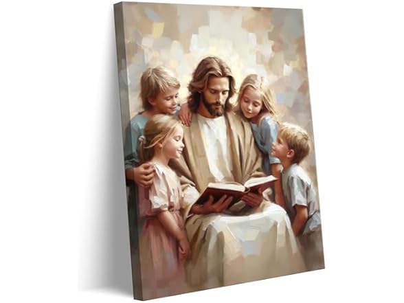 Jesus Teaching Children Canvas Wall Art Christian Kids Room Wall Decor Picture Jesus With Children Bible Poster Print for Kids Room Bedroom Church Decorations Ready To Hang