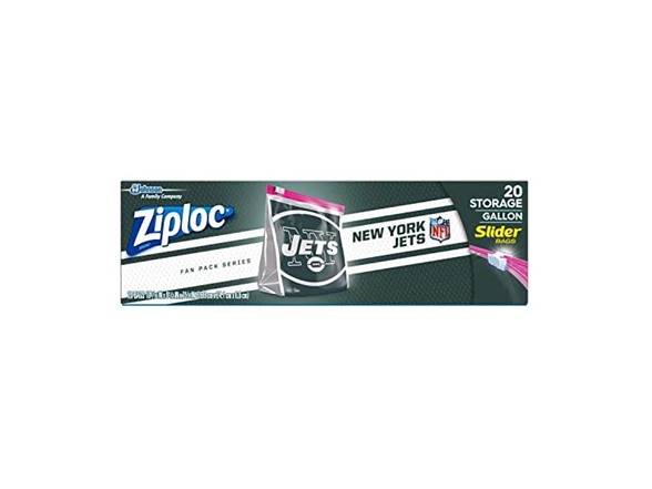 Ziploc Slider Storage Gallon Bag, Great for grab-and-go snacking, tailgating or homegating, 20 Count- NFL New York Jets