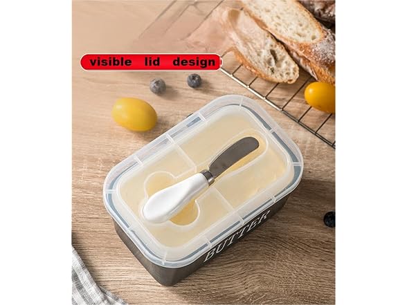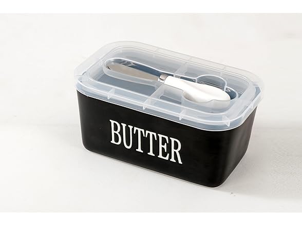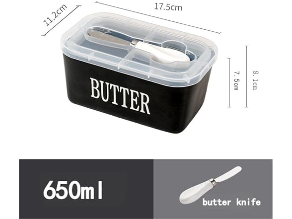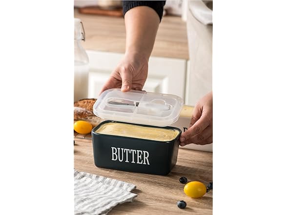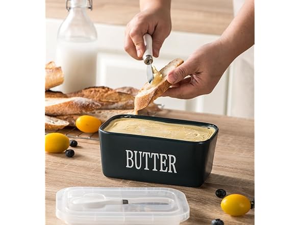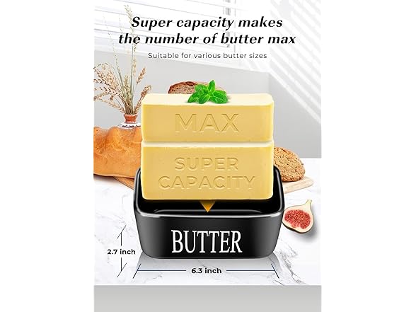 Ceramic Butter Dish with Cover for Countertop, Butter Holder Keeper Container for Refrigerator, Airtight Sealing for Butter Fresh,Large Butter Dish with Lid (Black, Extra Large)