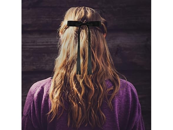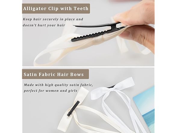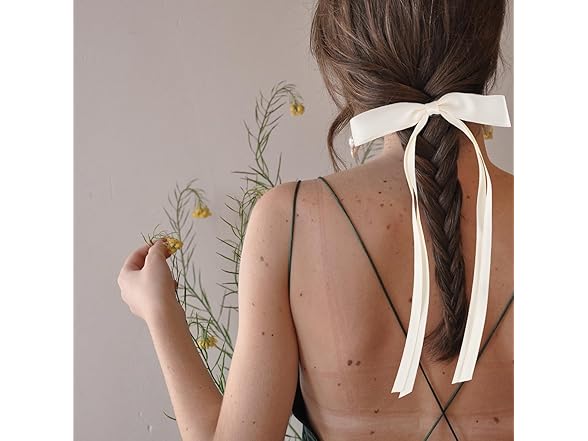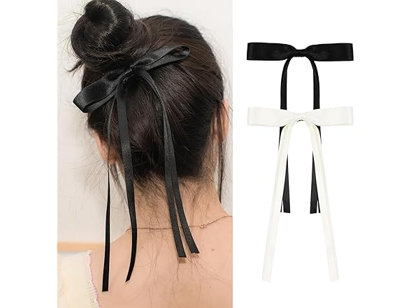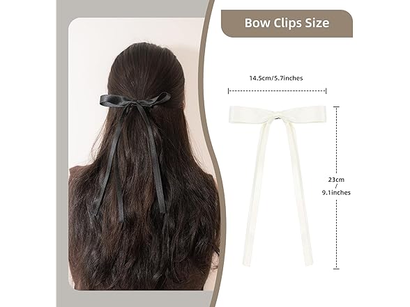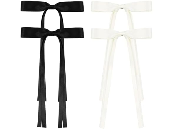 JIALITFUN Hair Clip, 4Pcs Fabric Bowknot with Long Tail Hair Accessories for Women Girls Toddlers Teens Kids (Black+Beige)