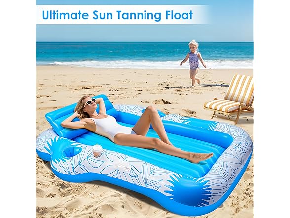 - 【EXtral Large Tanning Float】85” long and 71” wide extra large size could hold up to 2 people. Kick back and soak up the sun in style or share sunbath with your friend or family member on the JIANYHW Inflatable Adult Pool Lounger Float.