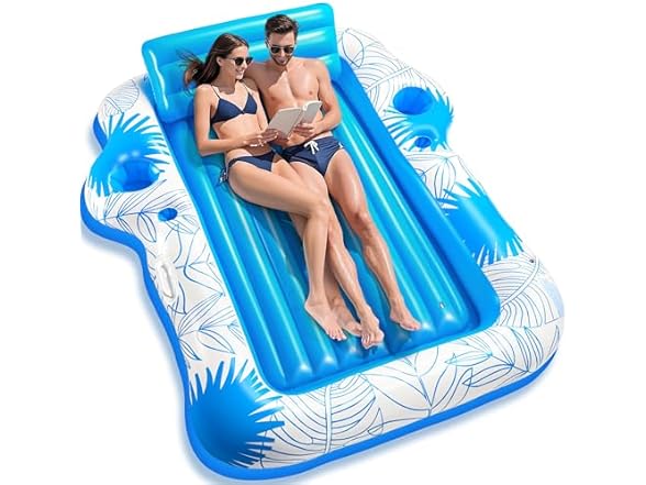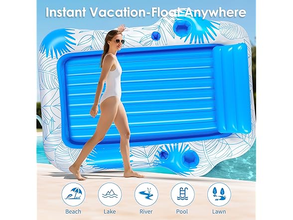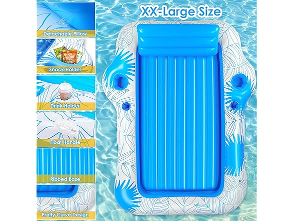 - 【Convenient Drink & Snacks Access】Our Inflatable pool float have 2 snack trays than others, so you can put your favorite drink, snacks and other small items within reach. Whether you're tanning or floating, stay comfortable and hydrated without having to leave.