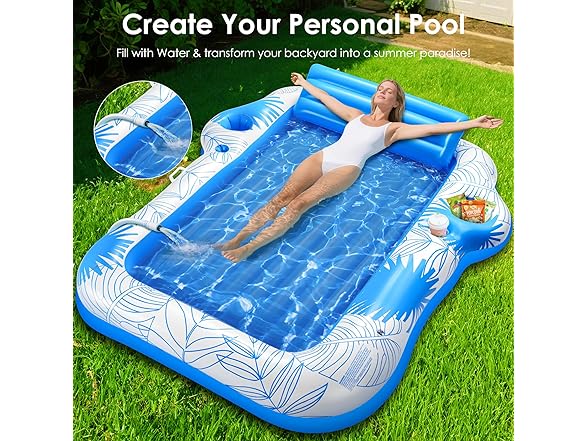 - 【Stay Cool & Refreshed】Beat the heat with our pool tanning bed. Simply fill your sun-bathing tub with water, stretch out to tan while floating on a liquid chill – soak up the sun's glow without the burn. Feel the gentle water embrace keep you refreshed, turning summer rays into your personal spa day.