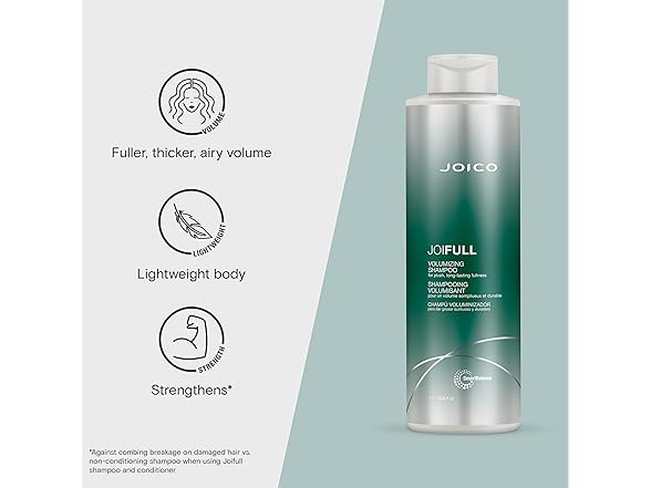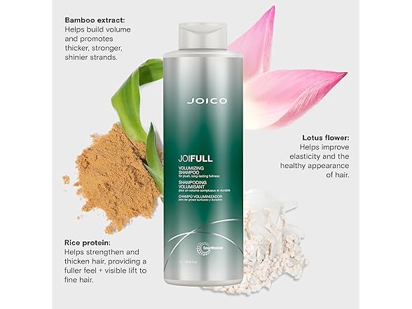 Joico JoiFULL Volumizing Shampoo has gentle cleanser that wash away excess oil and impurities that can weigh hair down, while Bamboo Extract, Rice Protein and Lotus Flower add airy body and fullness.