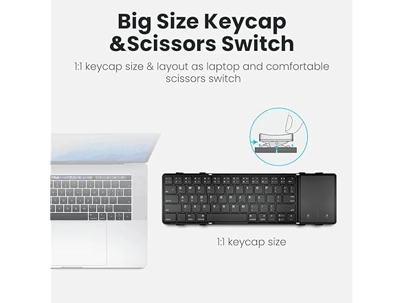 Quiet and soft keys: This thin and lightweight folding keyboard has soft-feeling, scissor-footed switches that keep you from making noisy sounds when you hit the keycaps
