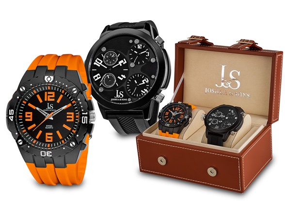 - (1) Black/Orange - Joshua & Sons Bold Swiss Quartz Silicon Strap Watch