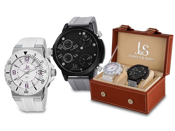 - (1) Black/White - Joshua & Sons Bold Swiss Quartz Silicon Strap Watch