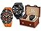 - (1) Black/Orange - Joshua & Sons Quartz Triple Time Zone Rubber Strap Watch